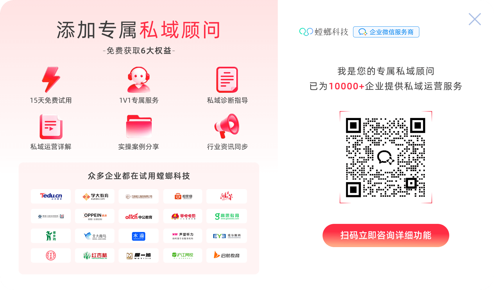 目前螳螂科技已服务教育、医疗、招商、零售、汽车、家装等几十个行业,合作包含新东方、沪江网校、美维口腔、好商汇、爱奇艺遍知等5000+知名企业。2021年4月,螳螂科技完成近亿元A轮融资。