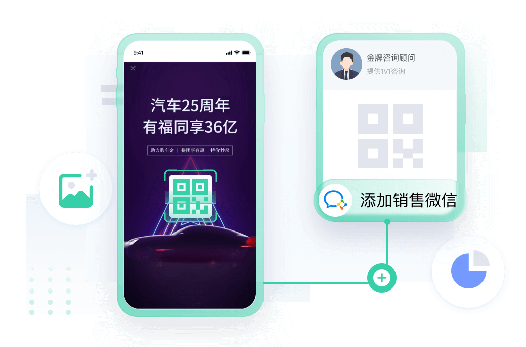 线上易拉宝、海报分享,配置SCRM活码或表单采集,快速引流获客