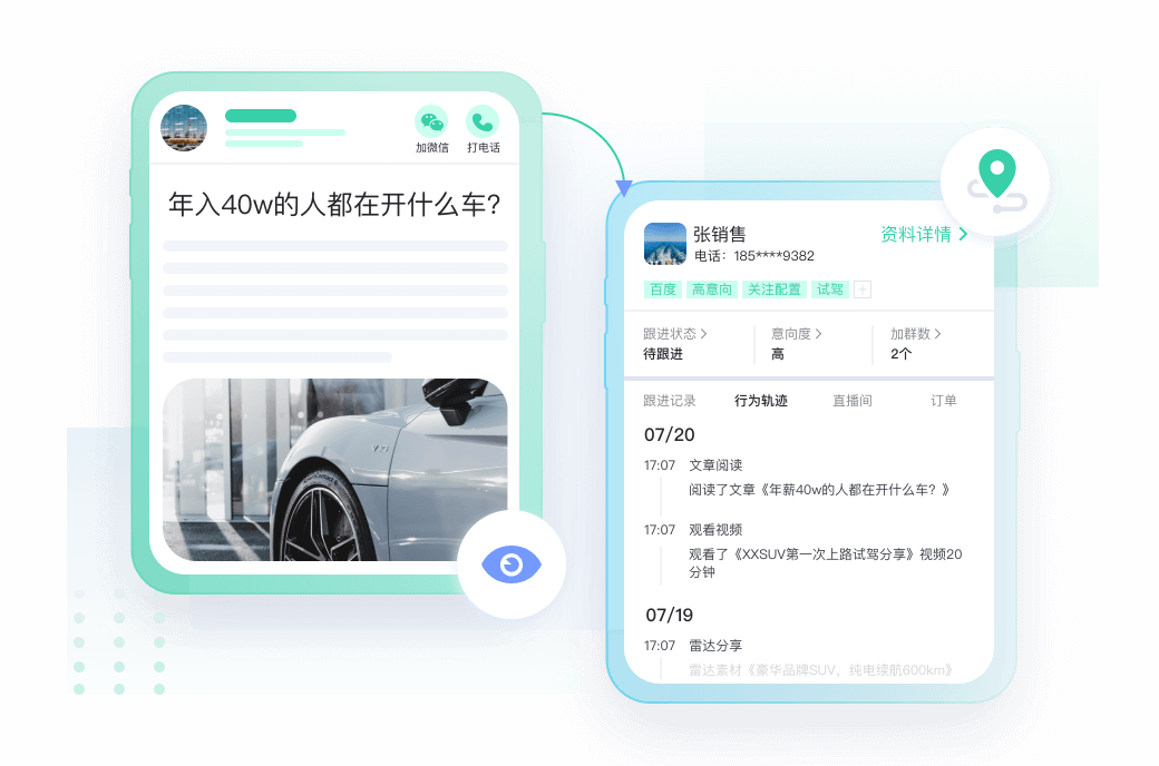 自动同步客户信息,如内容偏好、活动参与、意向车型、顾虑元素、需求细节等信息,让销售全面了解客户