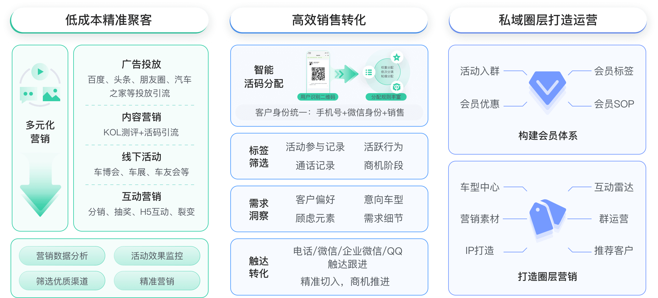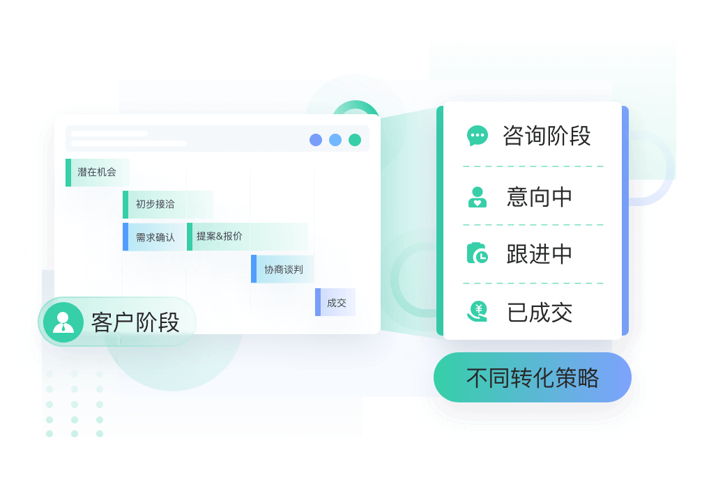 按照不同周期多波段触达,根据客户商机阶段制定不同转化策略,快速成单