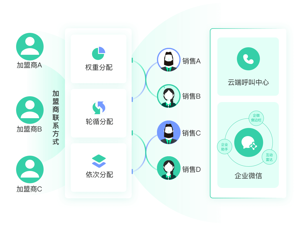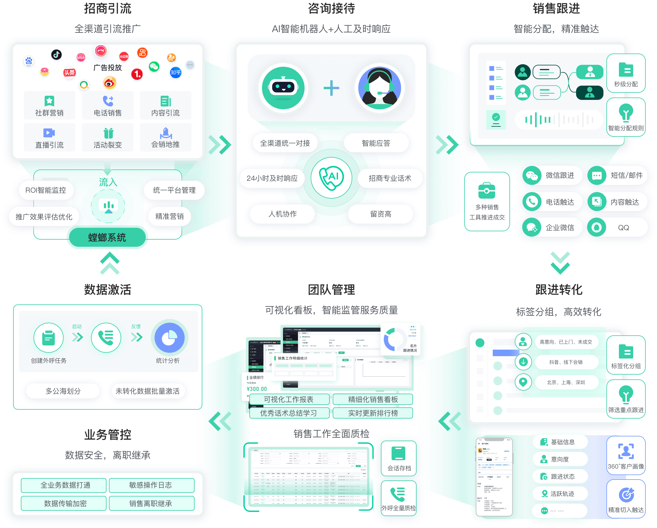 全业务数据打通,数据不出系统 推广线索自动保存,自动分配给销售,联系方式自动加密
