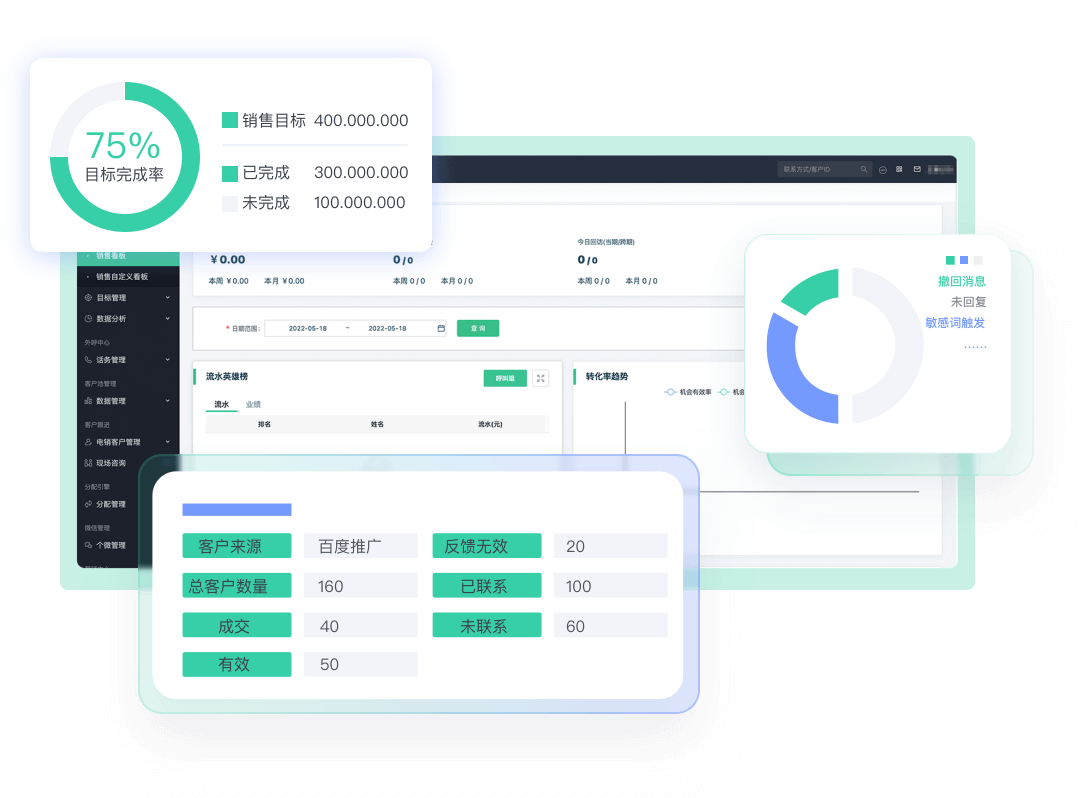 各渠道资源统一管理,进线秒级分配,线索转化情况实时追踪