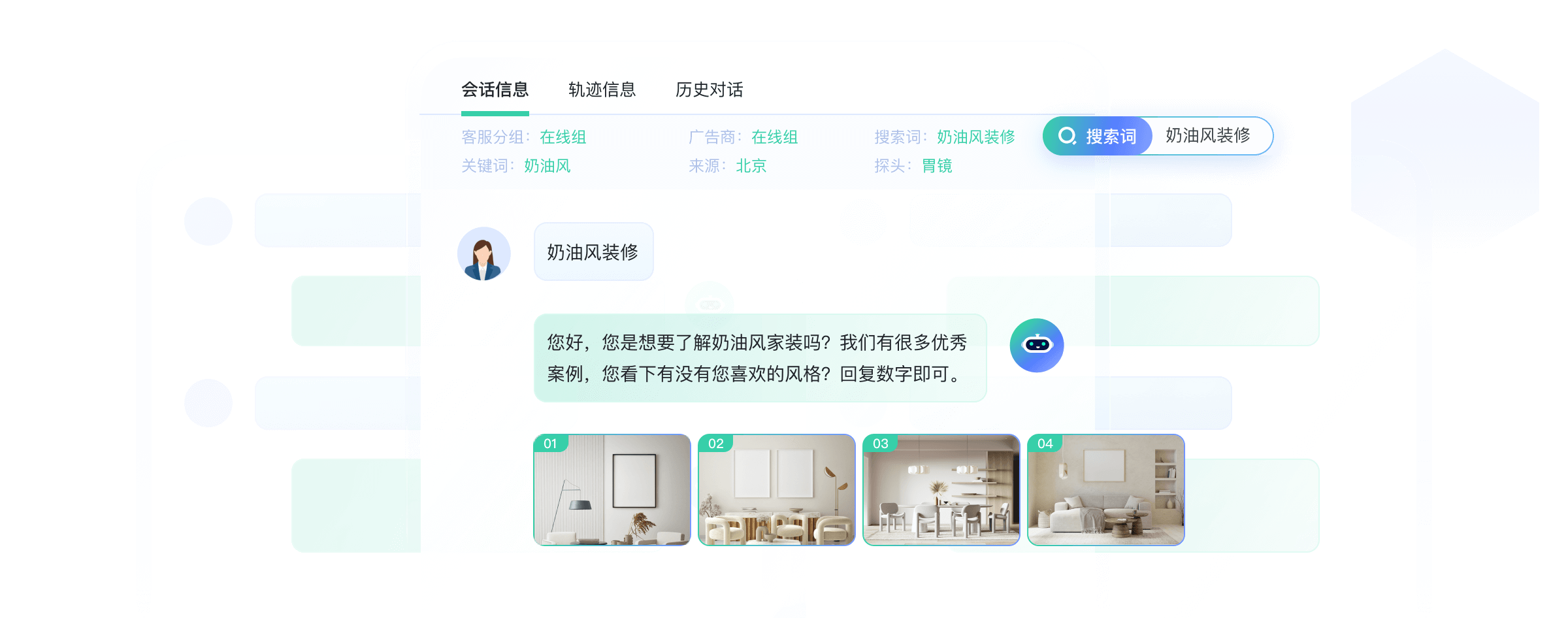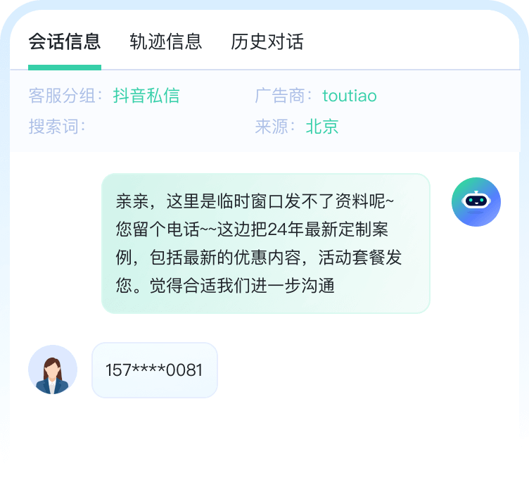 与CRM无缝对接,即时分配,访客咨询轨迹全面呈现,提升转化率
