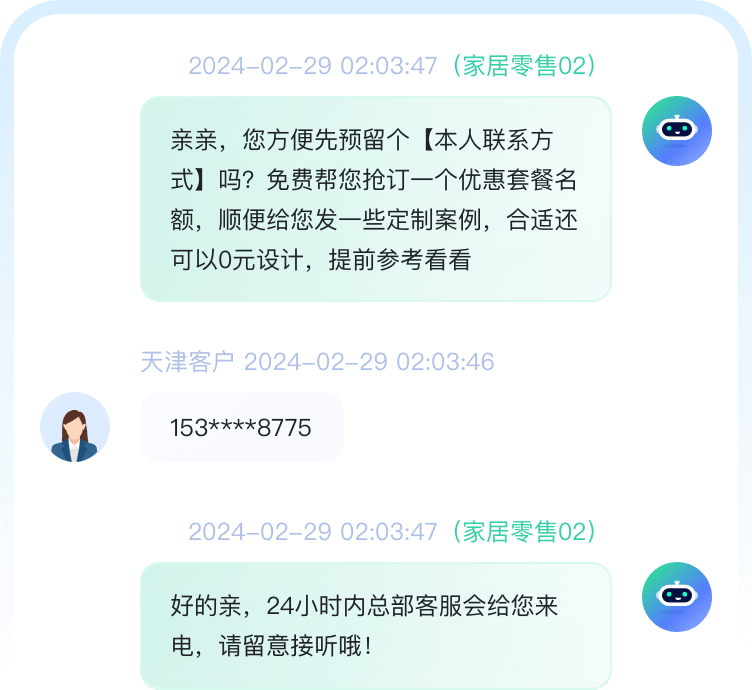 24h独立值守获客,获客率超过人工客服,夜间流量不浪费