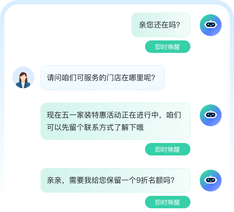 访客沉默即发送唤醒消息,离开挽回,智能激活