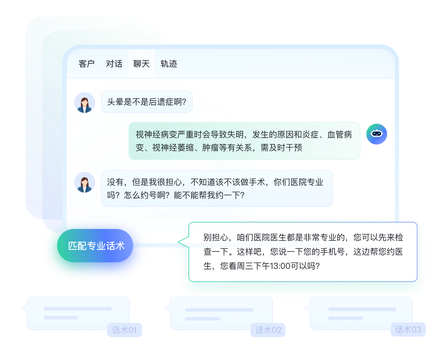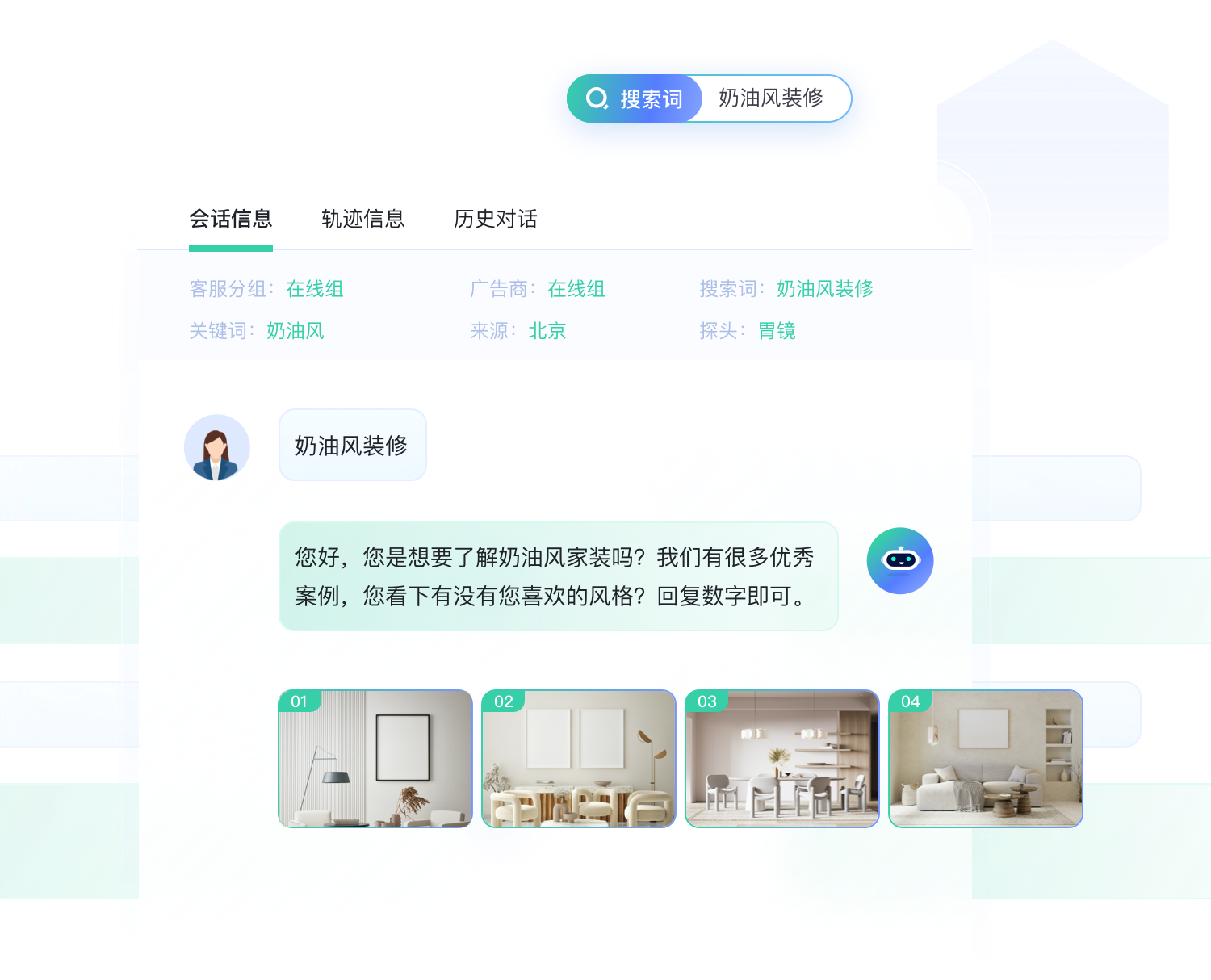拥有垂直行业背景的专家团队,针对教育、医疗、家装等行业咨询场景,不断优化咨询话术,提升留资率